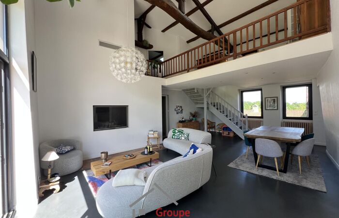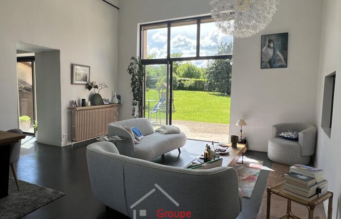 Charnay les Mâcon - Dans le très prisé quartier de Levigny, cette maison de caractère en pierre allie charme et confort moderne. Très lumineuse grâce à ses grandes baies vitrées, elle offre un vaste séjour avec plafond cathédrale et cheminée, une cuisine conviviale et une suite parentale avec salle de bains et rangement. À l’étage, une mezzanine dessert trois chambres, un bureau et une salle d’eau.