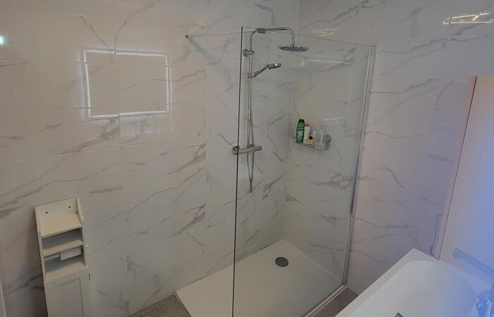 A l'étage, deux belles chambres, un petit espace bureau, une salle d'eau équipée d'une douche et d'un WC rénovée en 2025.