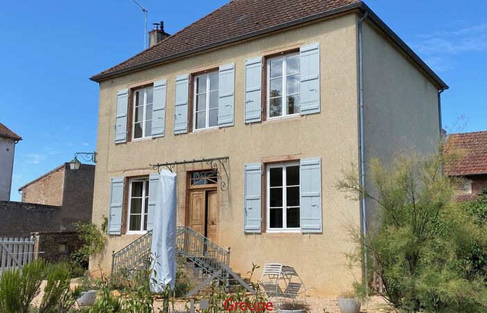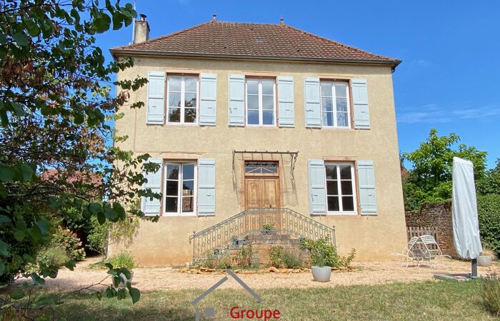 A moins de 15 mn au nord de Cluny, ravissante maison bourgeoise élevée sur caves (dont une cave voûtée) avec 3 niveaux, sur un terrain de 1109 m².