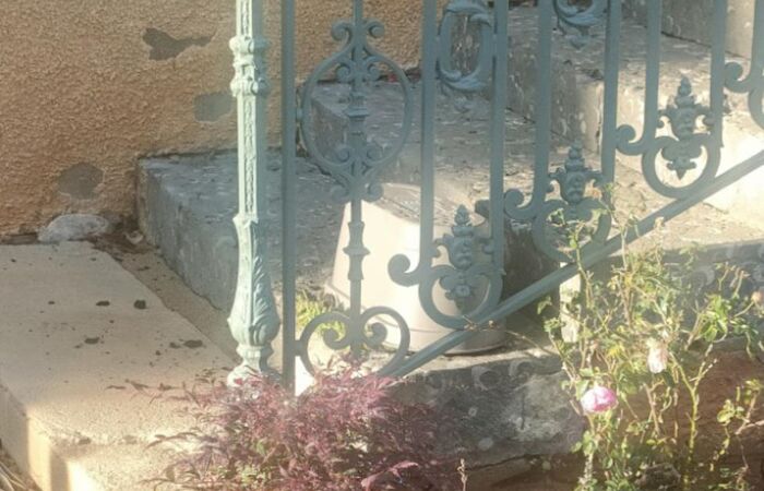 Quelques marches pour atteindre le perron et l’entrée s’effectue dans un vestibule qui distribue de part et d’autre, cuisine, salon-salle à manger avec cheminée, puis buanderie.