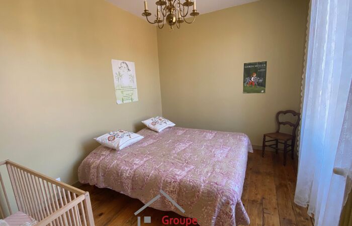 L’étage supérieur est occupé par 3 chambres se partageant une vaste salle de bains-wc. Au-dessus, une chambre aménagée dans les anciens combles avec une partie grenier restante.