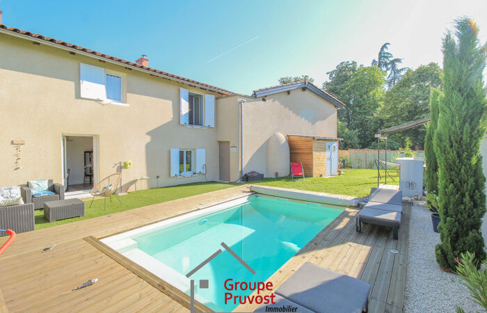 Limas - L'agence Pruvost Immobilier vous propose cette maison de 1860 d'environ 200m² entièrement rénovée à proximité immédiate du bourg de Limas. Ce bien atypique est composé d'une maison de 160m² comprenant de plain-pied une pièce de vie avec cuisine équipée et salle à manger avec un accès direct sur l'extérieur (terrasse et jardin), un dégagement, une salle d'eau + wc, une buanderie et une cave/cellier. A l'étage, 2 salons, 2 chambres, une salle d'eau, WC. Au 2ème étage, un espace mansardé cosy avec un dégagement et 2 chambres. Vous profiterez d'un studio indépendant de 35m² en duplex (idéal pour accueillir famille et amis, une activité libérale ou générer des revenus locatifs).